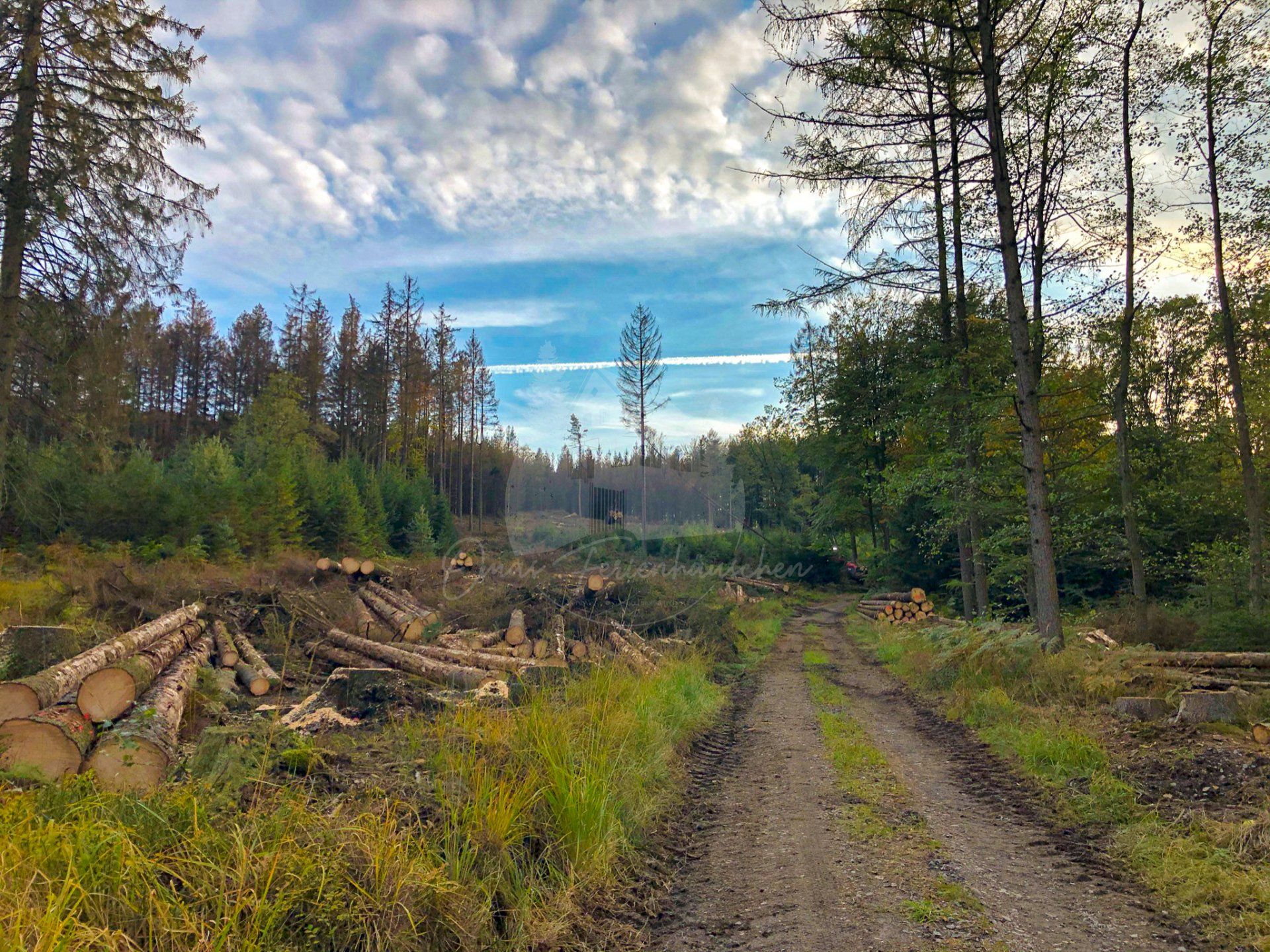 Unfortunately, climate change and the resulting last three incredibly dry summers with the resulting weakness of the spruce trees in the Bergisch region have led to an infestation of bark beetles that has caused excessive forest damage. Within 3 summers, the once dense spruce forest, which had grown over decades, was completely cleared. In part, several hectares of large contiguous areas of dried-up red spruce were "harvested" with the harvester and transported away. And so completely one is not yet "finished" with it. Hardly any other sight shows one the consequences of the otherwise so abstractly handled word "climate change" in such a dramatic way mercilessly on one's own doorstep.